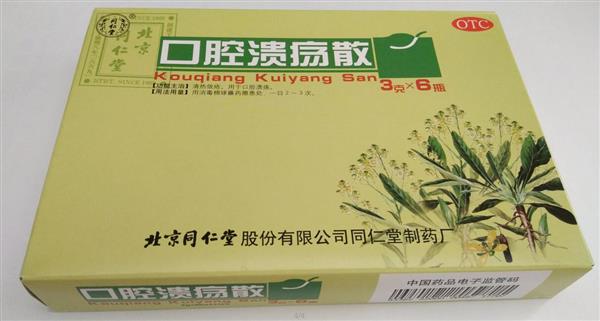 【藥品名稱】口腔潰瘍散 【商品名/商標(biāo)】 同仁堂【規(guī)格】3g*6瓶 【主要成份】青黛、白礬、冰片。 【適應(yīng)癥】 清熱斂瘡。用于口腔潰瘍。
